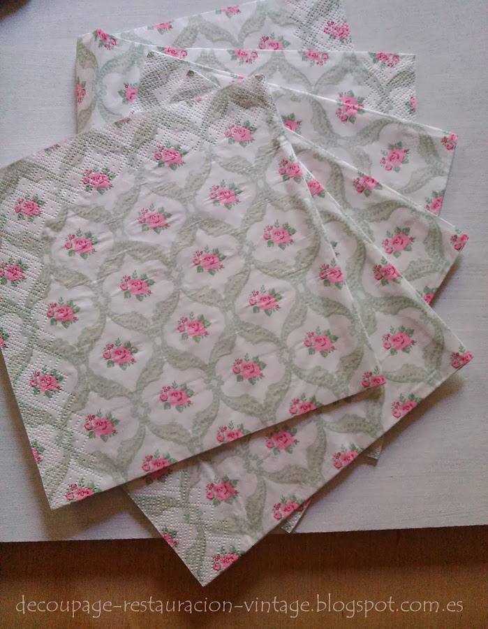 Para la técnica decoupage he elegido estas servilletas estilo tilda que venden en IKEA. Quienes no sepan en qué consiste la técnica decoupage, es recortar, pegar y barnizar un papel o servilleta para que quede bien integrada en una superficie, bueno asíexplicado en cuatro palabras. No es una técnica difícil, pero sí entretenida, se necesita paciencia y práctica.