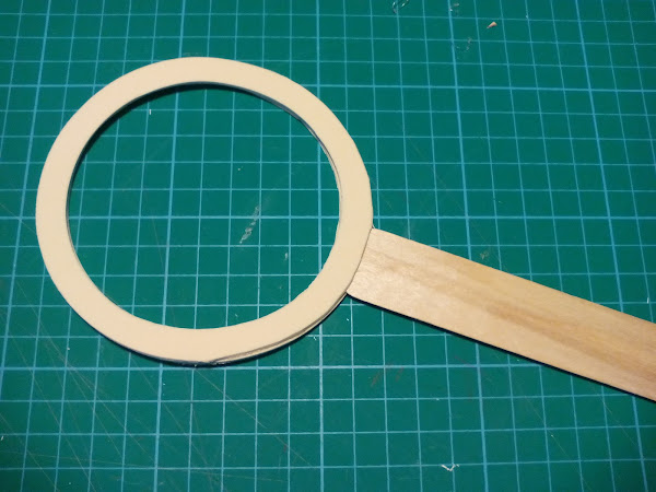 2. Unimos el palo de helado con los dos círculos de goma eva.