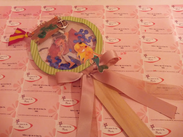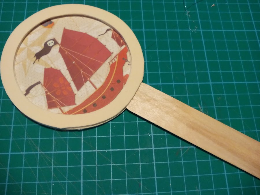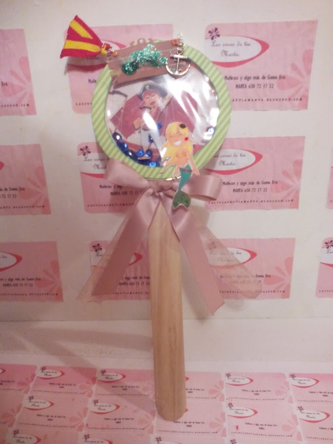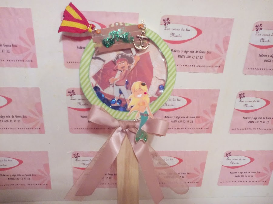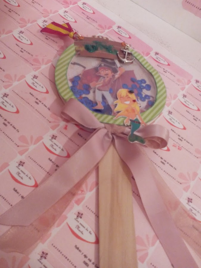 3. Pegamos el papel decorativo que hará de fondo de la piruleta.