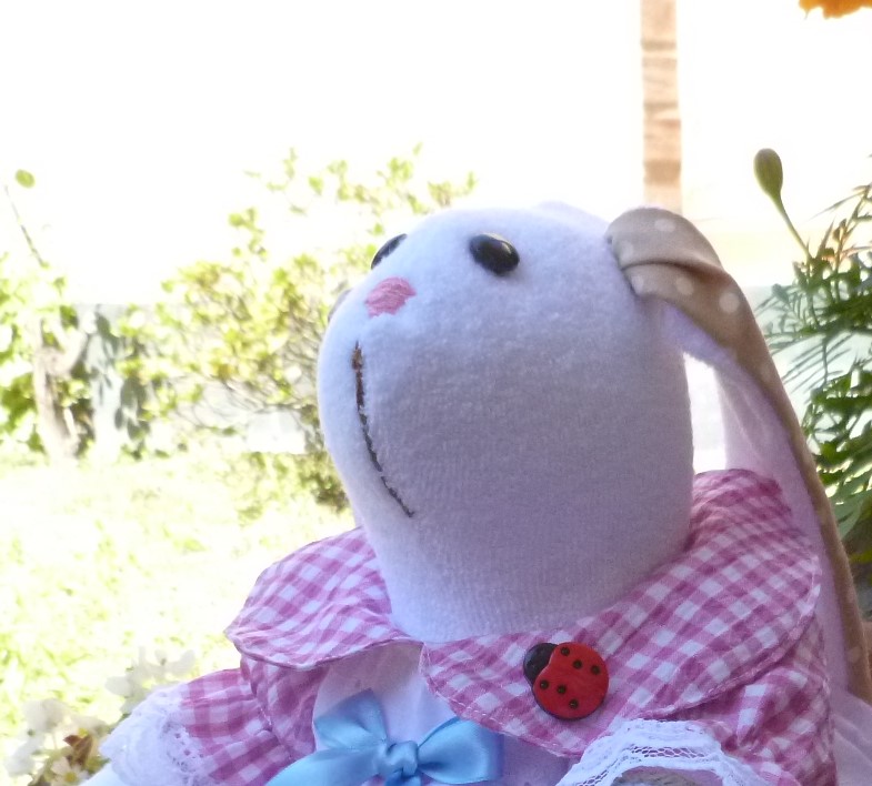 Para terminar cosemos las orejas y los ojos, bordamos la nariz y la boca.