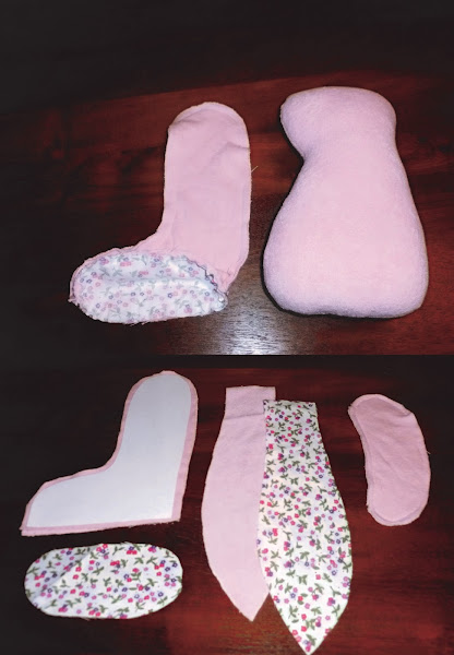 2- cortar 2 piezas para las orejas en towel y 2 en lunares.