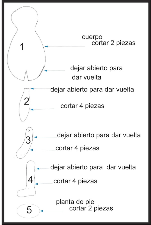 Coser las partes, dejando abierto donde indique, dar vuelta, rellenar y coser con puntadas por donde se da vuelta.