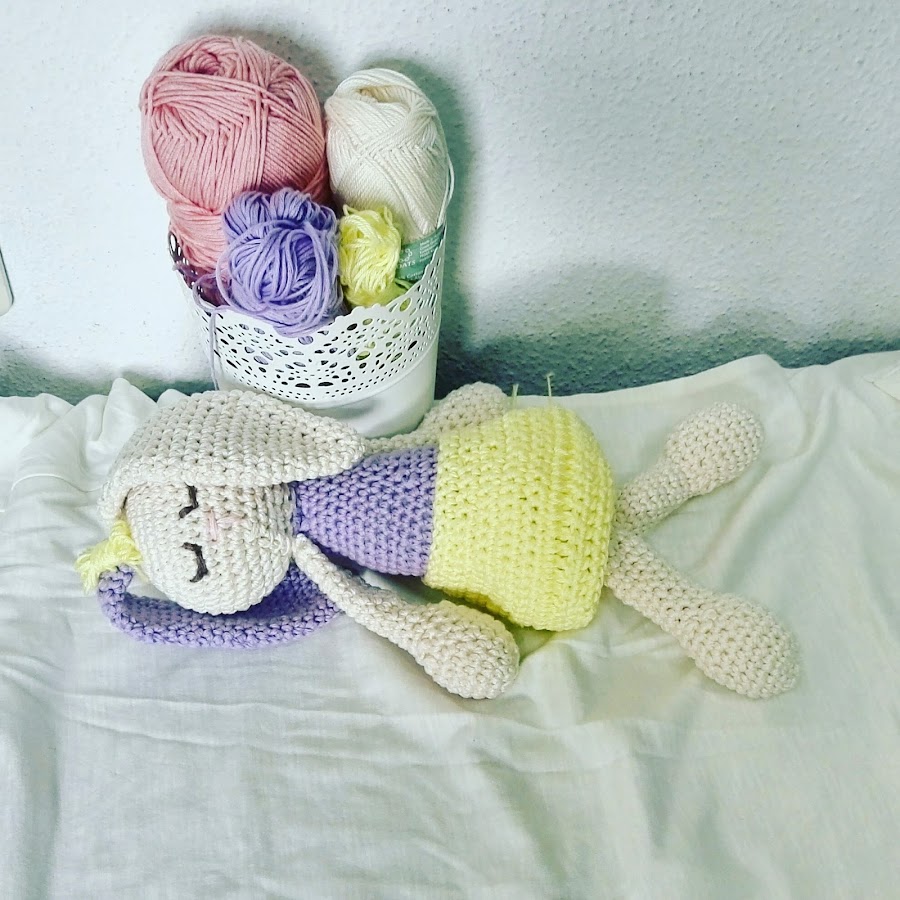 Si hace algunas semanas os enseñe El dormilón , esta os traigomuna conejita a la que he llamado Lulu (por antojo de mi hija mayor).