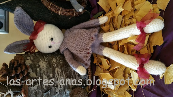 OS PRESENTO A MI CONEJITA , como me gustan los retos!!!! me he anotado a uno de Luna Silva , se trataba de tejer un tutorial sin saber lo que era, o sea : reto a ciegas y ha salido este primor, si queréis visitar su blog os dejo el enlace con el tutorial