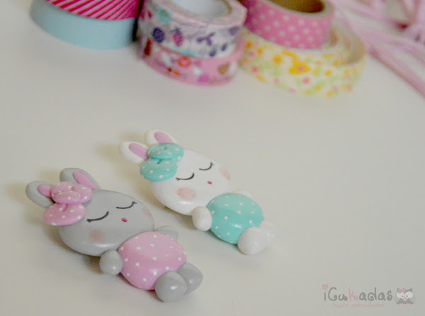 Estas conejitas, que empezaron siendo de fieltro al final se han pasado también al fimo.