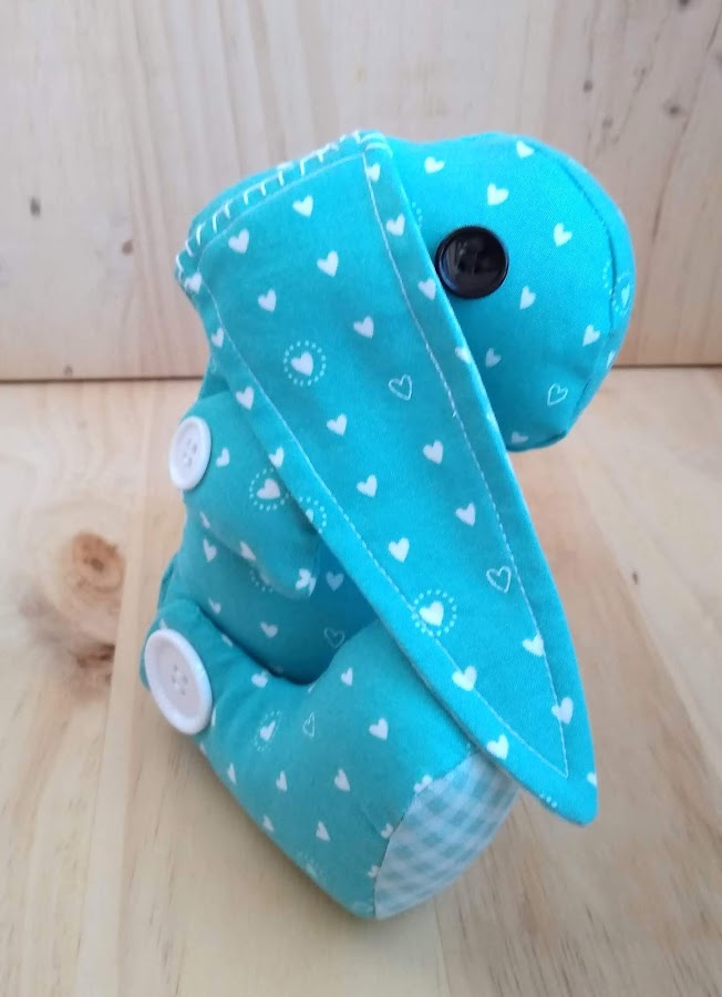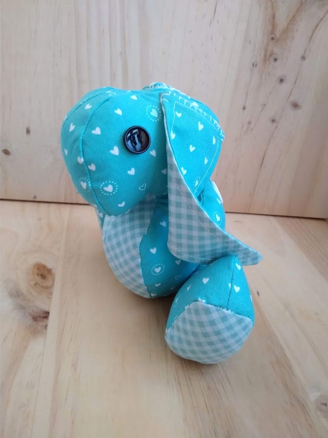 Éste es el último muñeco que me han encargado. Este precioso conejito en color turquesa.