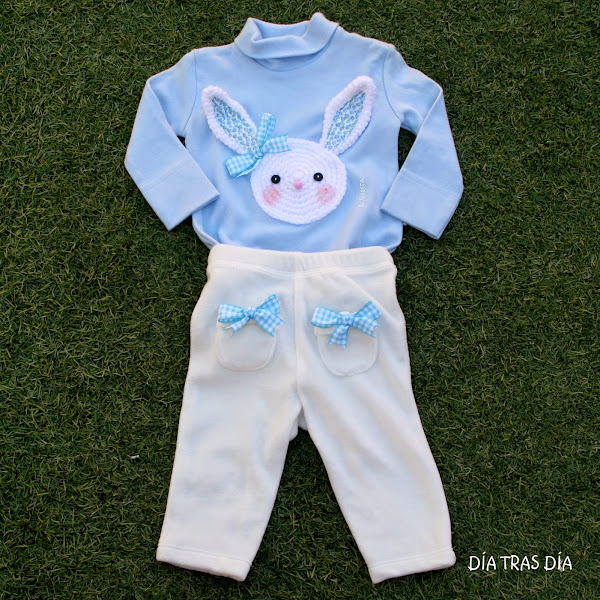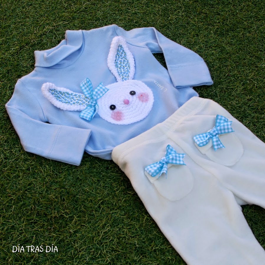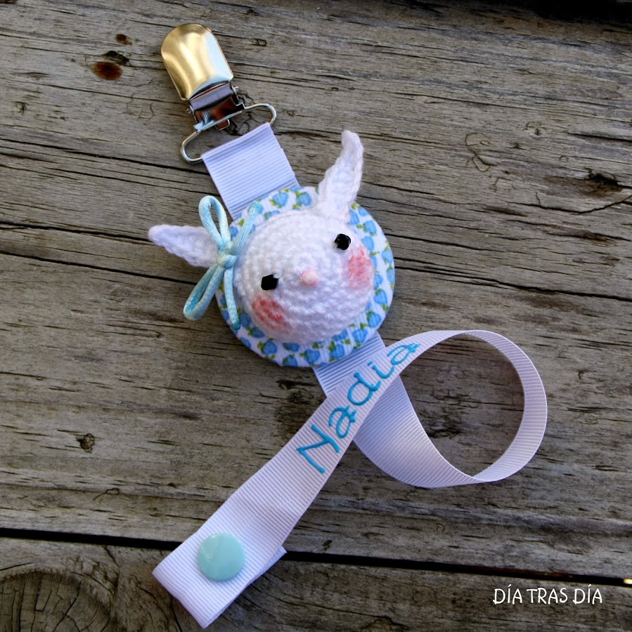 Y para terminar el conjunto, le hice un chupeterocon un conejito como protagonista, como no podía ser de otra forma: