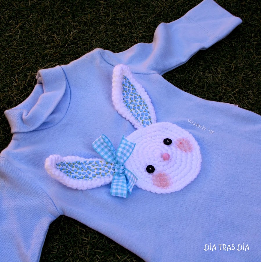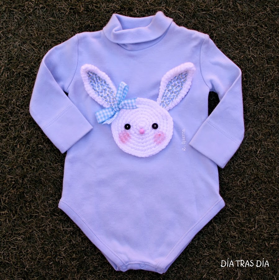 Así quedó el body, con el conejito y sus orejas que se separan del cuerpo en el extremo para darle un toque más simpático ;-):