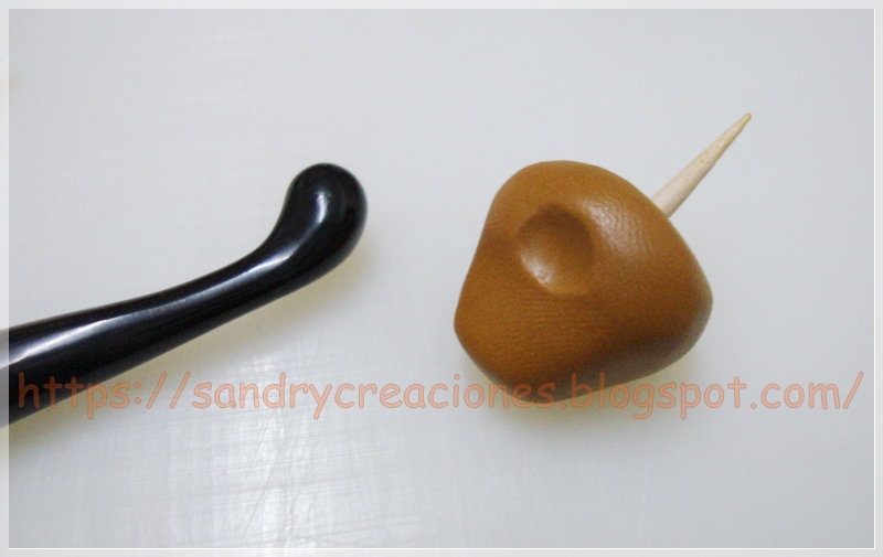 Seguidamente en el lugar donde colocaremos el morro del conejo hacemos un pequeño hueco con una herramienta redonda.