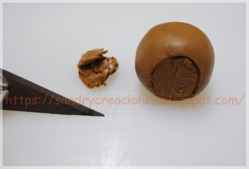 Paso 1. Realizamos el cuerpo del conejo de Pascua. Para ello hacemos una bola con arcilla polimérica de color marrón, el color elegido para nuestro conejo.