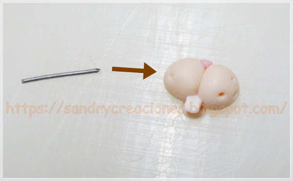 En este paso, opcionalmente, podemos marcar los ojos del conejo con un palillo o dejarlos sin marcar y pintarlos una vez la figura esté terminada o bien marcarlos con un palillo y pintarlos una vez la figura esté horneada.