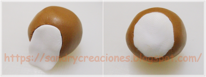 Seguidamente rellenamos este espacio con arcilla polimérica blanca y pulimos bien para que se integren bien los dos colores.