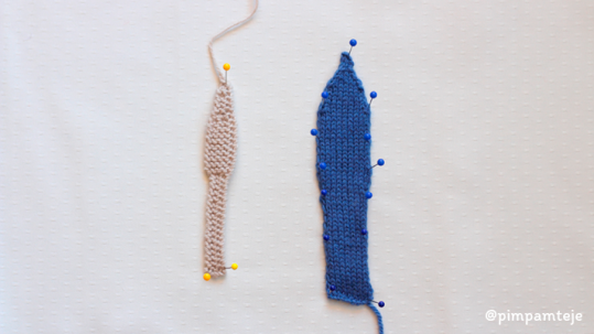 Cierra los puntos por el derecho de la labor y teje otra pieza igual.