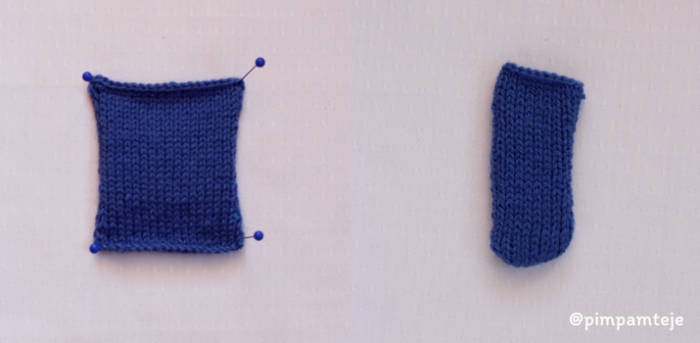 Teje un rectángulo a punto jersey, de la siguiente manera: