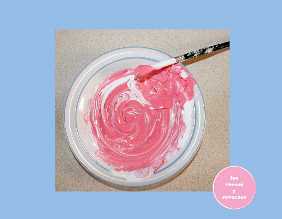 Ahora, pinta el conejo con el color que hayas elegido. Mi pequeña ayudante y yo, queríamos que el conejo fuera rosa, pero como no teníamos el color, mezclamos pintura acrílica roja con mucho blanco y quedó este lindo color!