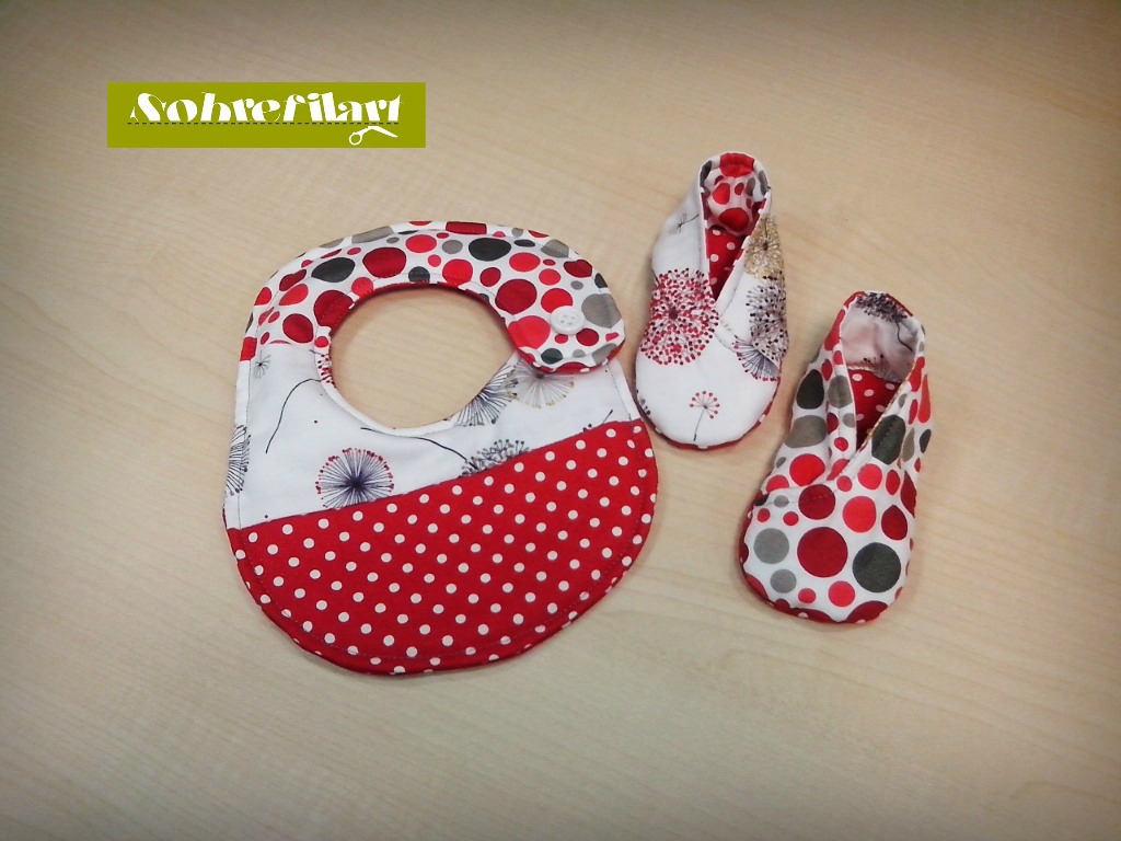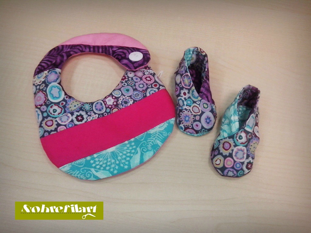 Estos conjuntos de babero y zapatos para bebé se pueden personalizar tanto con el nombre y con la tela que más os gusten. Los que os enseño hoy no están personalizados por que los he hecho para tenerlos en la tienda y tener stock, pero aún así se puede poner el nombre (lo tenemos todo pensado).