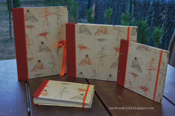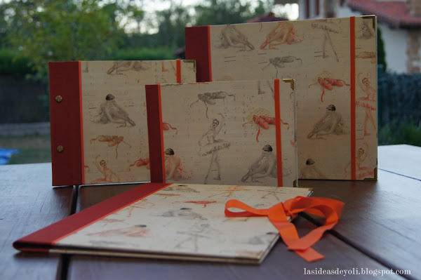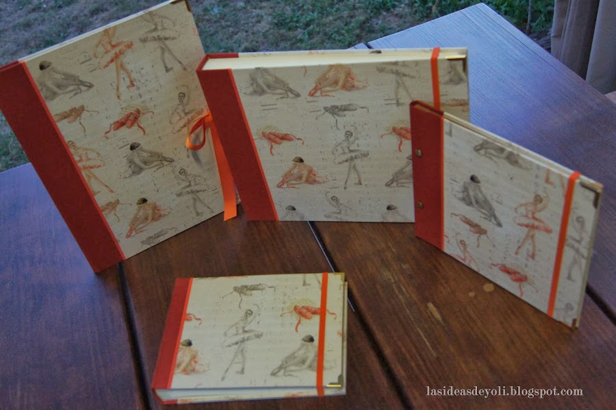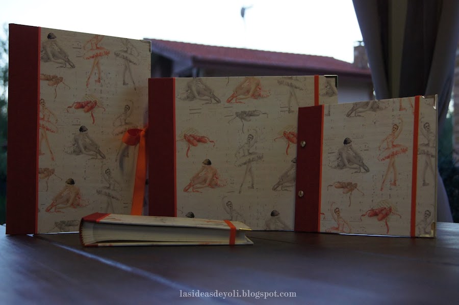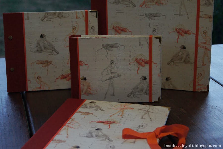 Dos álbunes con el interior preencuadernado tamaños 24,5*30,5 y de 15*20,5 con 30 pag. y cierre de goma en naranja.