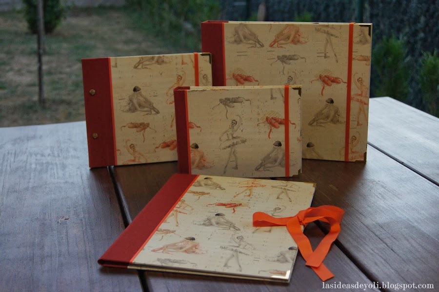 Y un álbum de hojas intercambiables de 20*24,5 con tornillos en bisagra de apertura y cierre de goma.