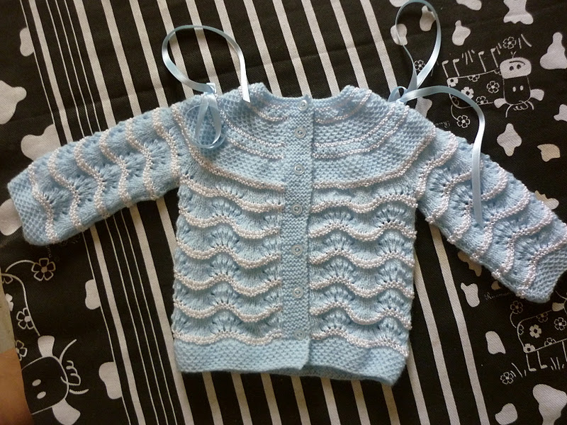 Hola chicas. Terminé hace un ratito una chaquetita para bebé de meses. Es el modelo para niño Tom, el de los pompones, pero en chiquitín. Me lo encargó Madaly para el chiquitín de su amig ...