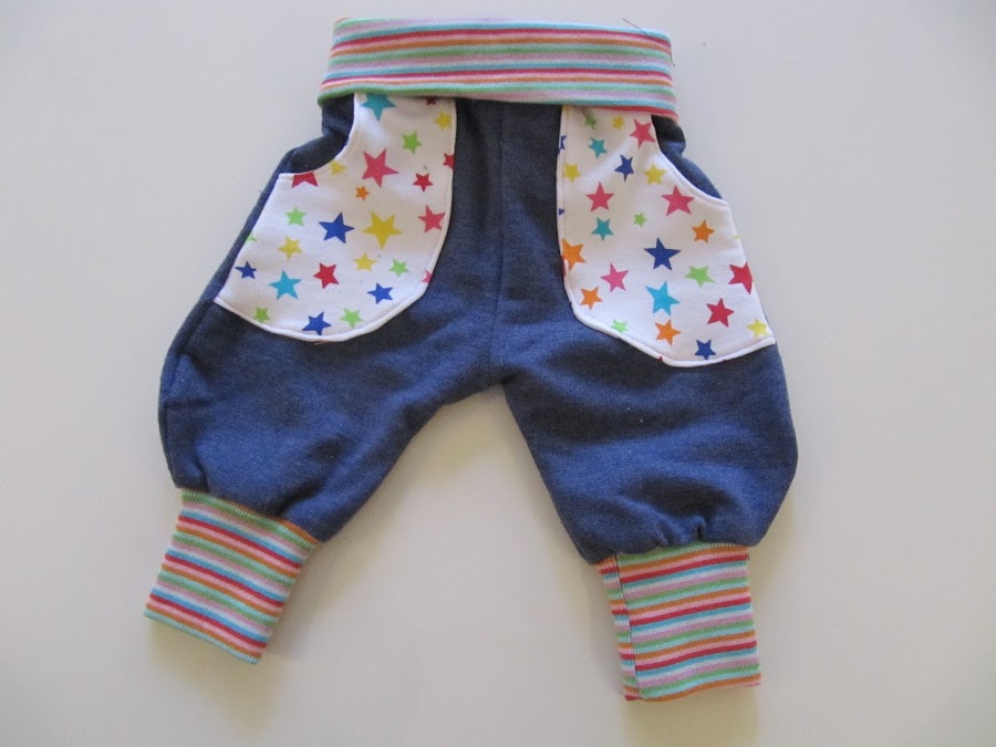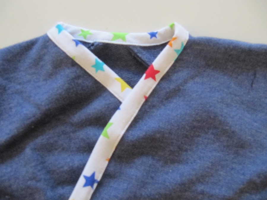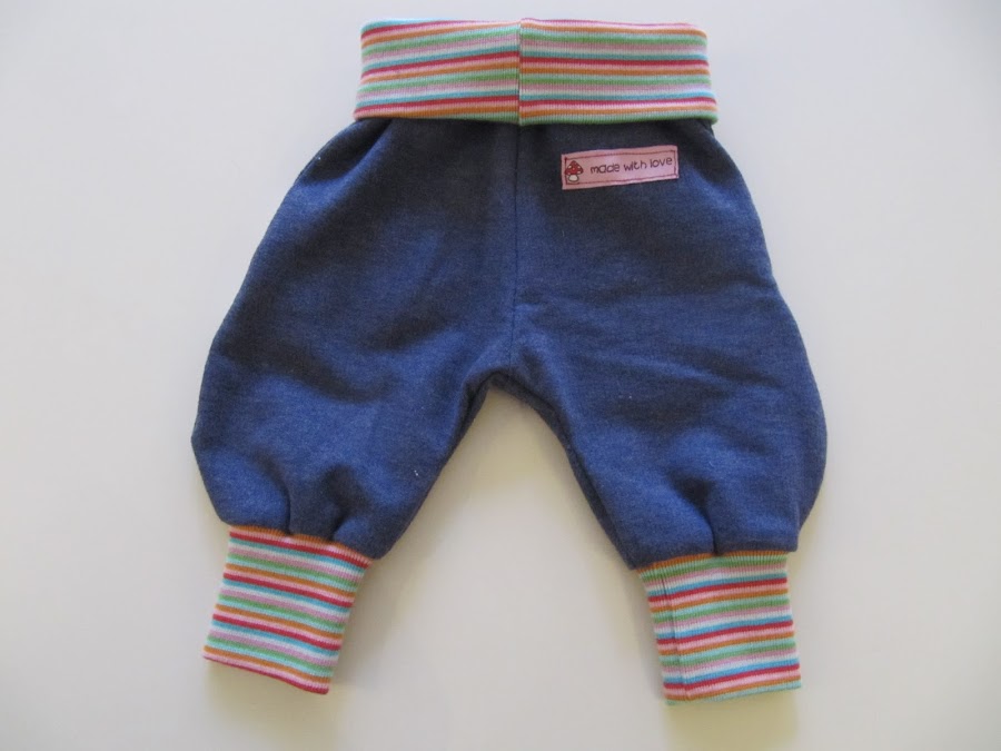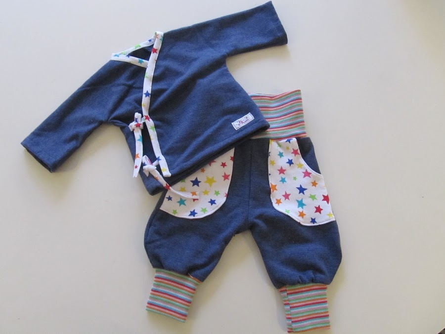 Este es uno de los primeros conjuntos que hice, incluso antes de saber si era niño o niña... así que cosí algo unisex. Con tela de sudadera color tejano.