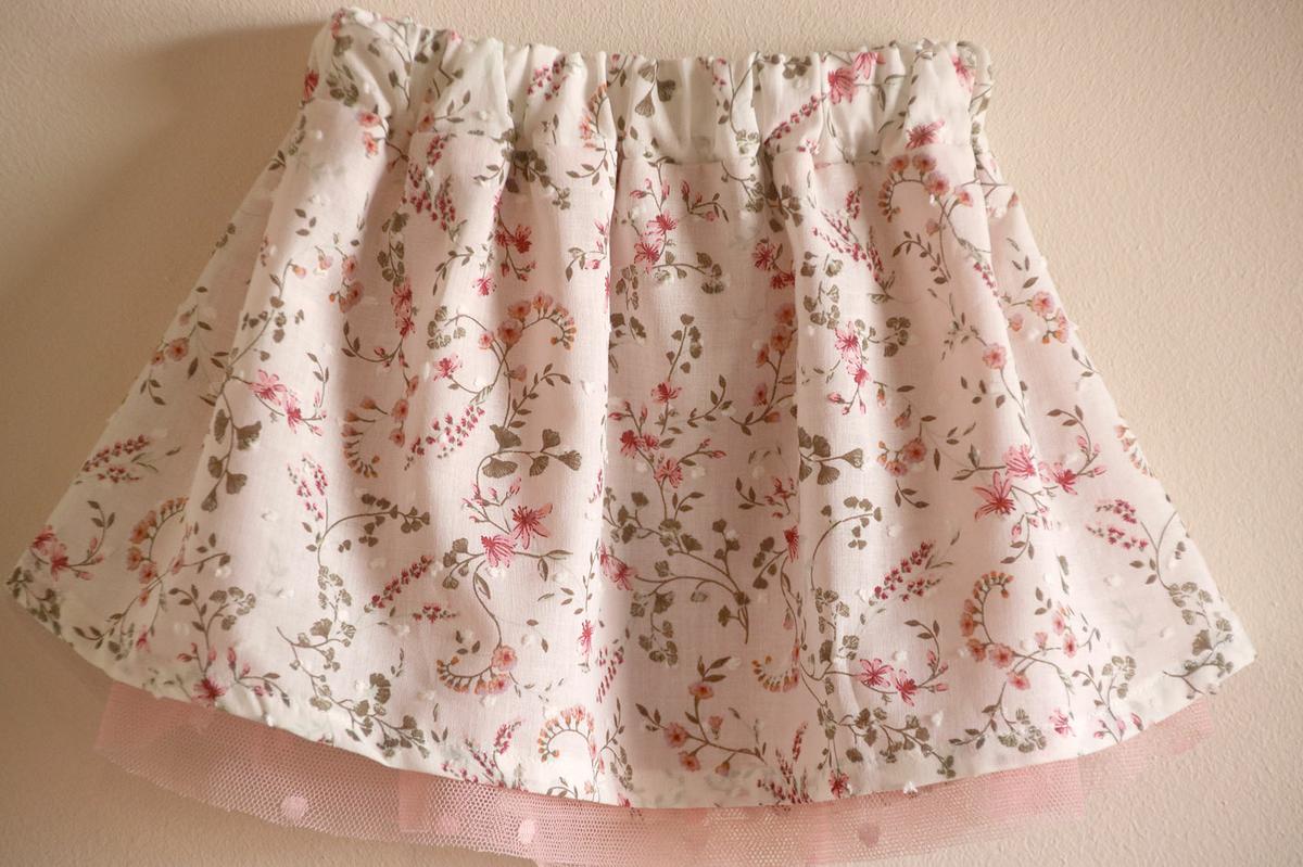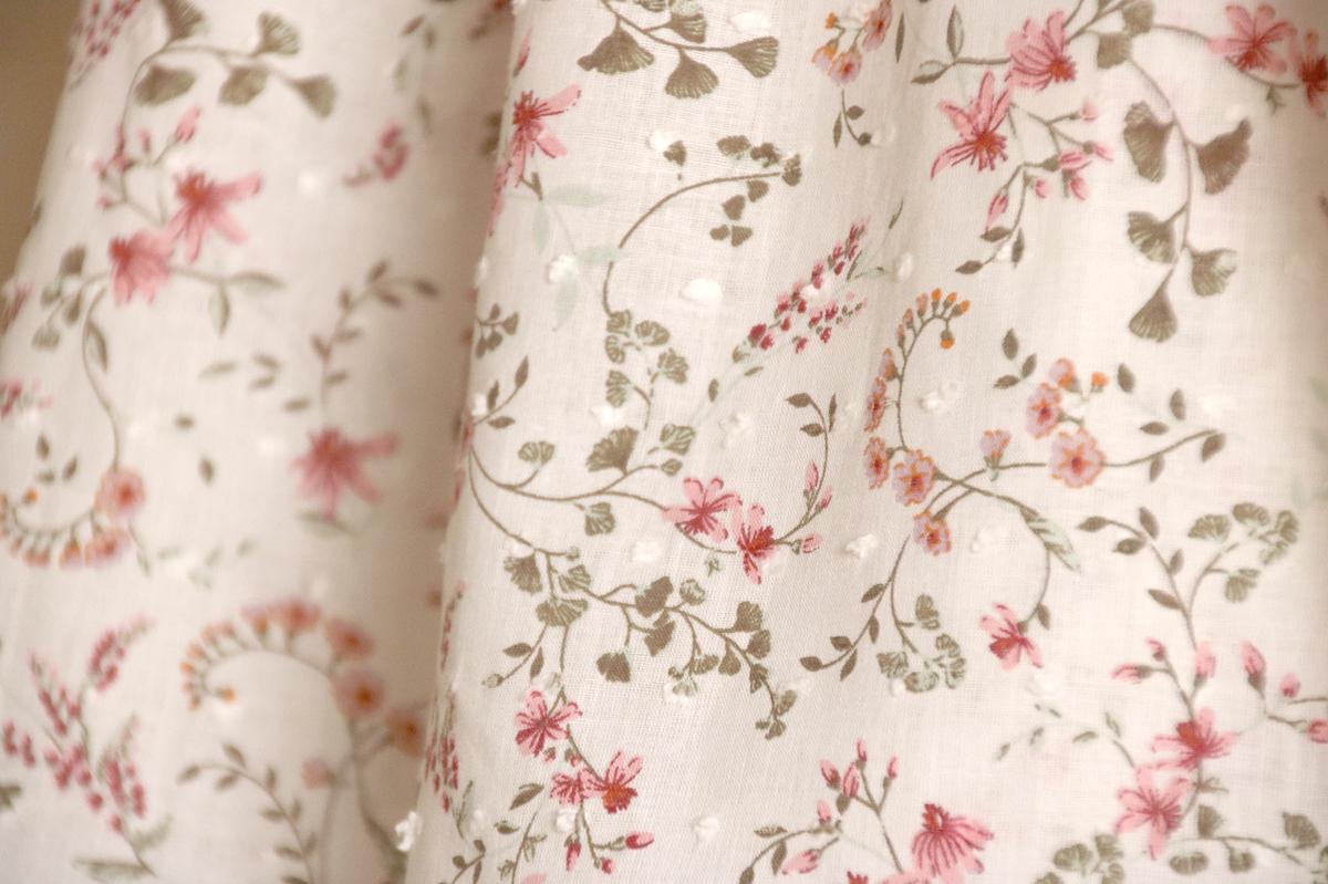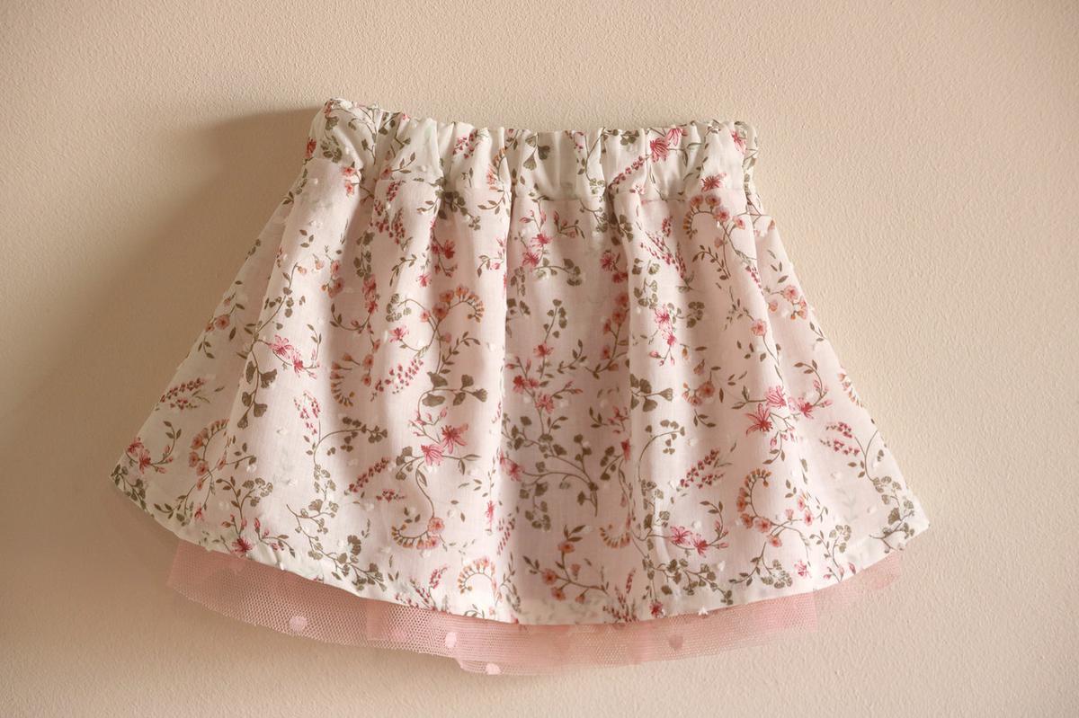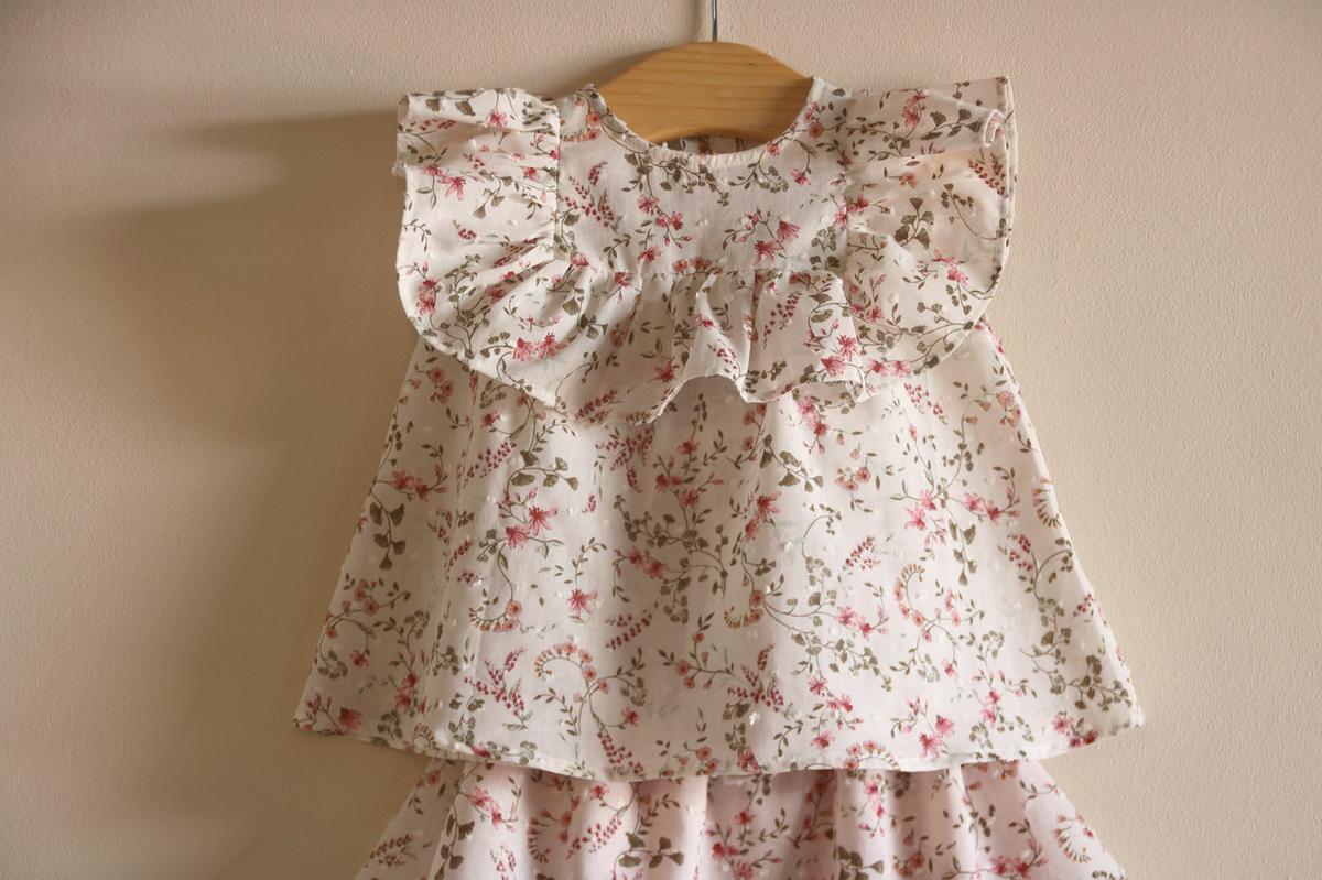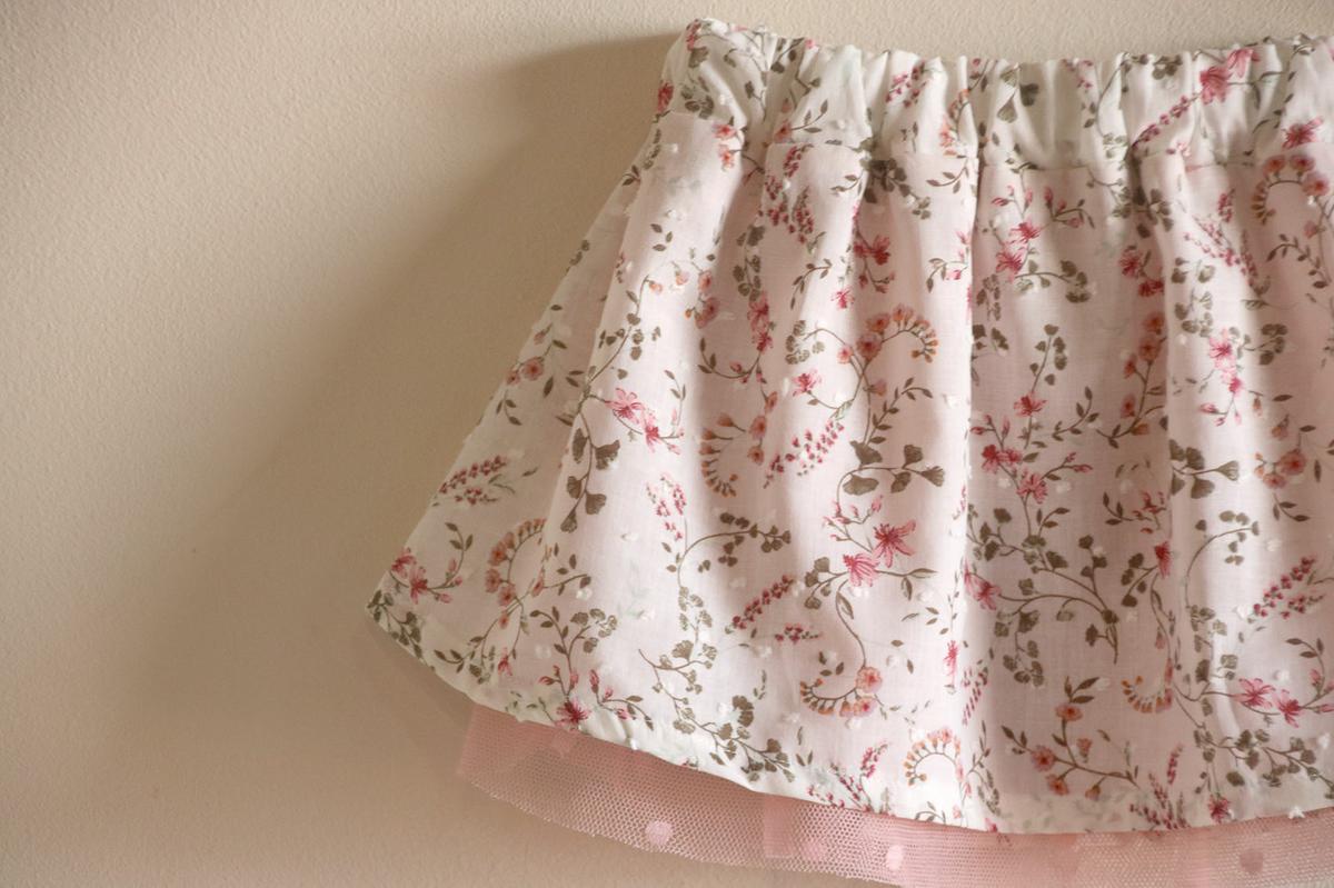La tela que he elegido para realizar este conjunto es un plumeti estampado y un tul plumeti para el forrito de la falda. Para este conjunto os aconsejo que utilicéis telas finitas: voile, plumeti, batista, popelín…