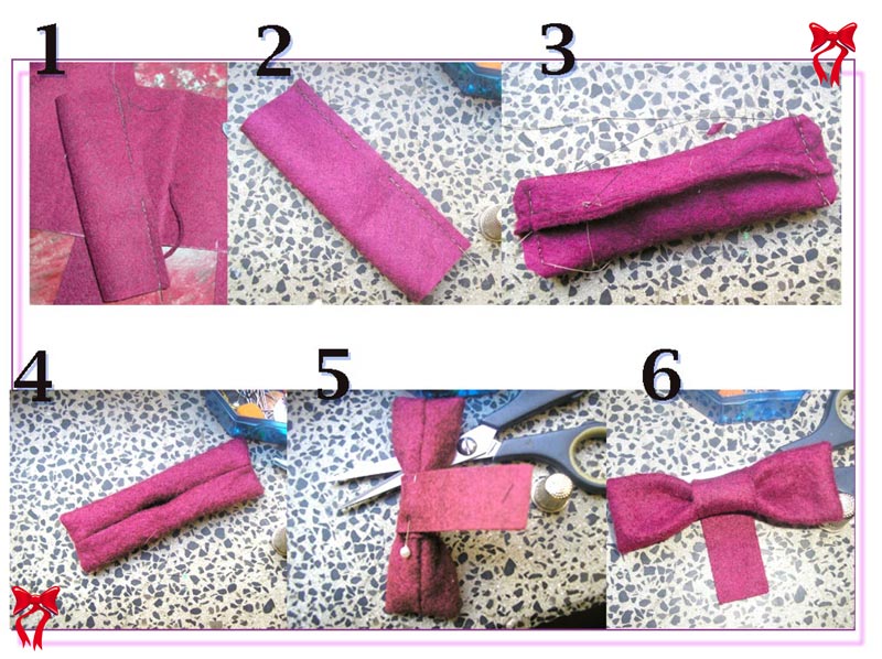 6º-Fin, ya tienes tu lazo. Es el típico de las pajaritas, lo recuerdo por los disfraces de esta época del año, también se puede hacer con dos rectángulos para que quede doble, como hemos hecho en la bufanda y espero que a alguien esta explicación le resulte interesante.
