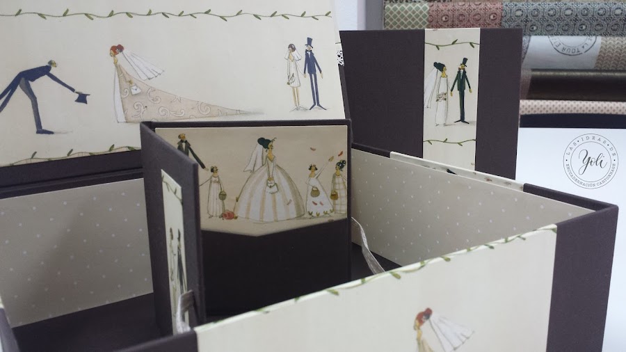 Sus nombres y la fecha del enlace están grabados en seco, bajo relieve.