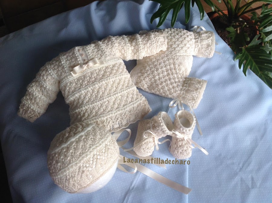 EL CONJUNTO PEDRO ESTA COMPUESTO DE 4 PIEZAS REALIZADO EN PERLE Y LANA BEIGE