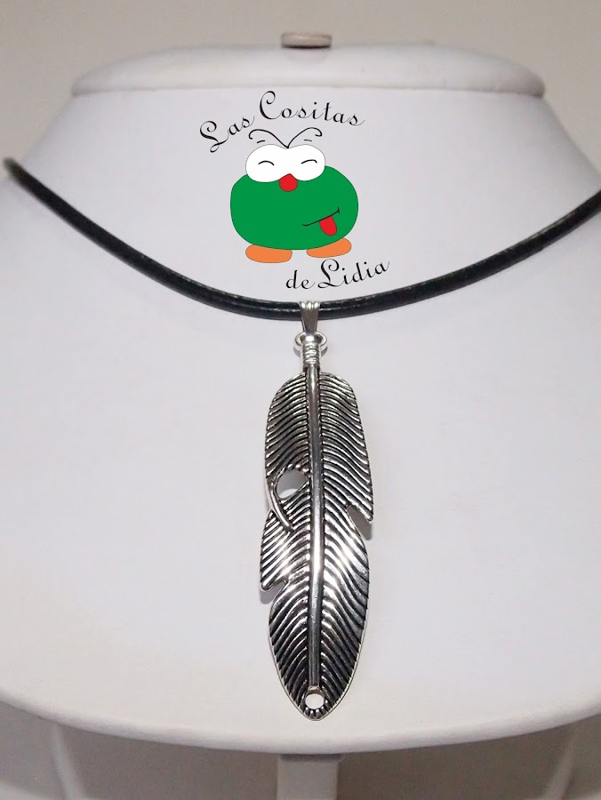 El colgante es una bonita hoja plateada en un cordón de cuero negro con mosquetón con cadena para ponerlo a la medida que mas os guste, que quede más larguito o más corto.