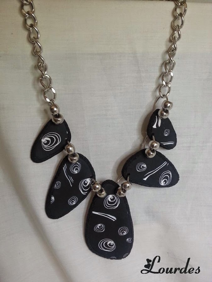 Este conjunto de collar y pendientes en blanco y negro
