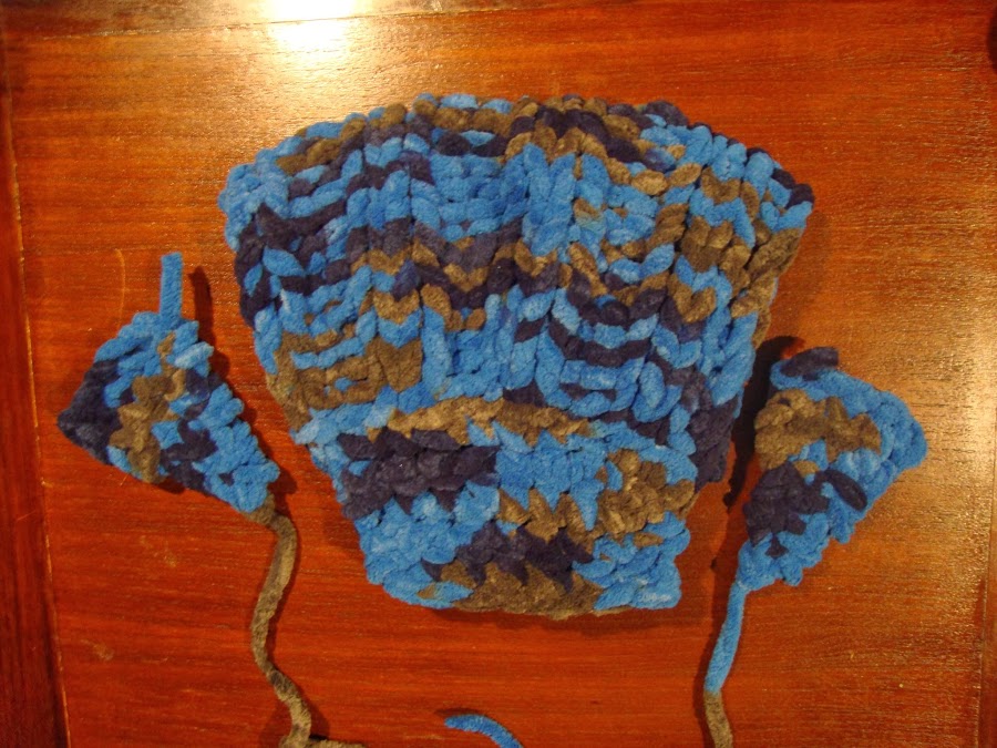 Está tejido con lana gruesa de pelo de terciopelo y agujas del nº 7.