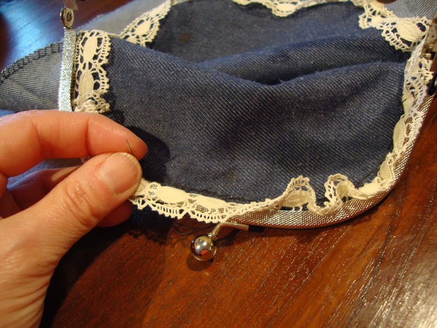 Para darle otro toque esta vez añadí por dentro una puntilla en la zona de la apertura. Queda muy coqueta y ayuda a esconder las puntadas que iremos disimulando bajo ella cuando montamos las piezas.