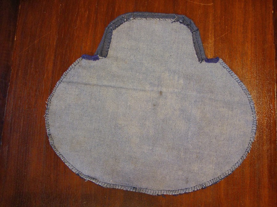 Rematamos así las partes de arriba de ambas piezas y después las unimos entre sí por abajo, cosiendo y sobrilando todo el borde del saco.