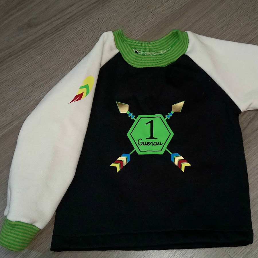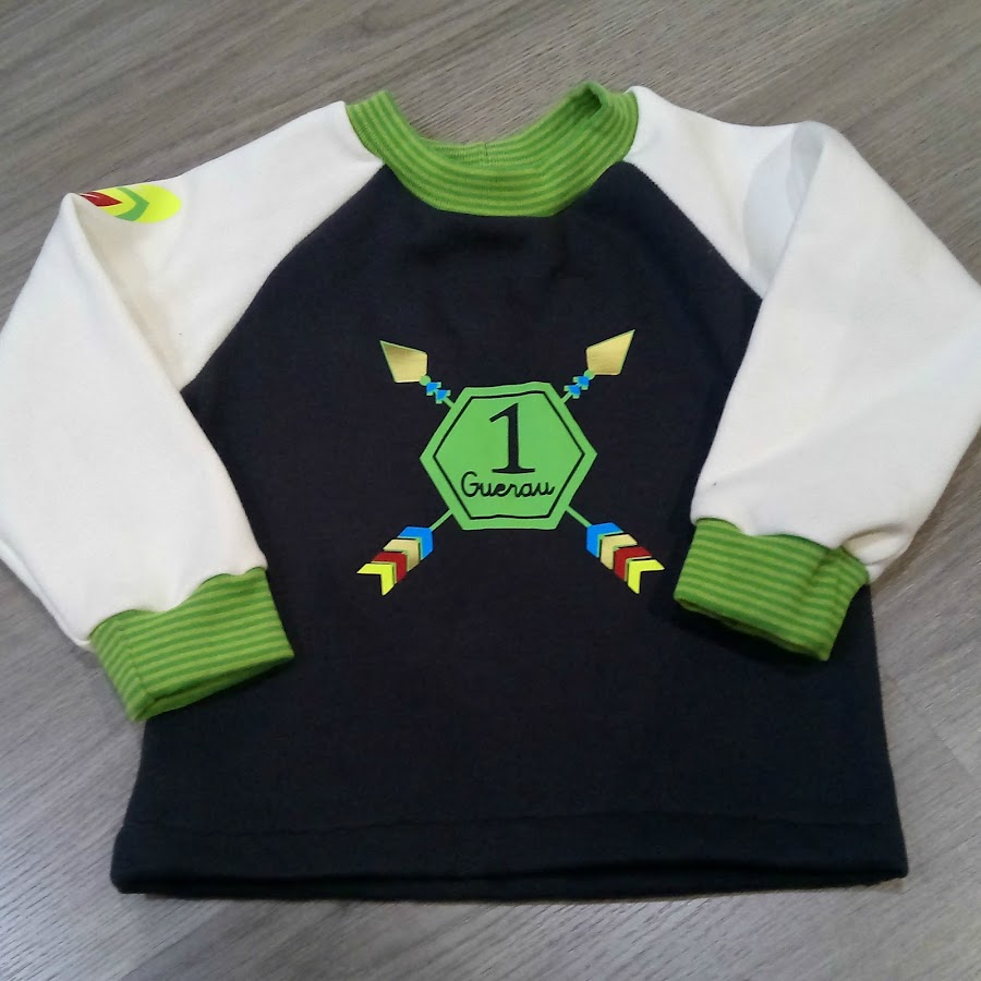 Si os fijáis las flechas son doradas (vinilo de plotteralia), nada que ver con el dorado espejo que le puse en la camiseta de O para el cumple de los 5 años que no aguantó ni un lavado... la podéis ver aquí, porque no quedó ni rastro de la corona después del primer lavado. Efecto espejo no me dio buen resultado para prendas de vestir... (estáis avisadas jeje)