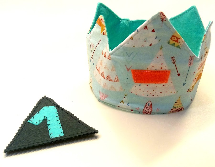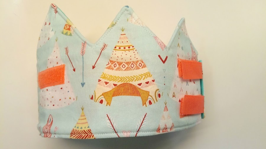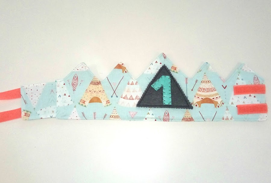 Para la ocasión le he preparado una corona con una tela de algodón preciosa regalo de mi amiga Lour de tipis flechas y plumas, una monada que tenía le venía genial.