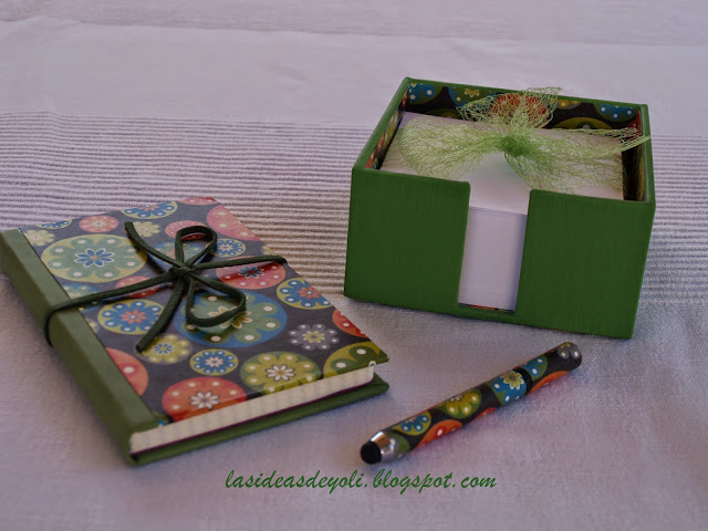 Son tres piezas, cuaderno personal con bolígrafo de puntero a juego y taco de notas para el escritorio.