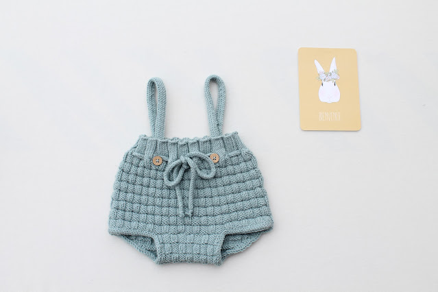 Los pantaloncitos tienen un tipo de punto más elaborado que es muy entretenido de tejer y son el patrón "Picnic Baby Bloomers" de Sandra Magalhães. No es ninguna novedad lo mucho que me gustan este tipo de prendas y este modelo con tirantes me encanta especialmente.