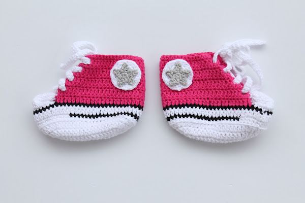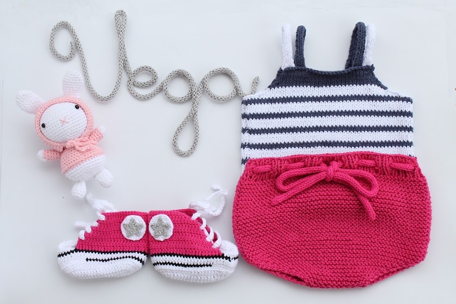 Para completar el conjunto de bebé no podían faltar unas mini zapatillas Converse a juego y un conejito de amigurumi.