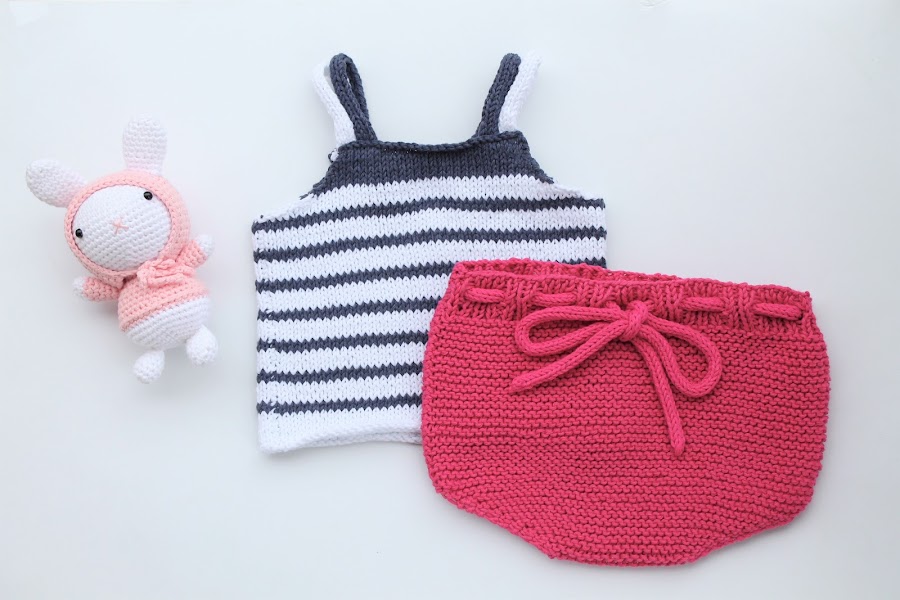 At first I was going to repeat this sailor outfit I made two years ago but after thinking about it for a while I decided to follow the same idea but making Creativa Atelier baby bloomers and a stripes top adapted from a pattern from a Phildar catalogue.
