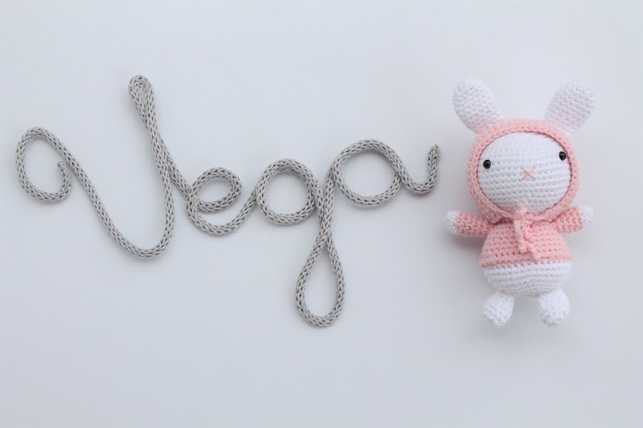 To finish the baby outfit I couldnt forget a pair of matching mini Converse sneakers and a little amigurumi bunny.