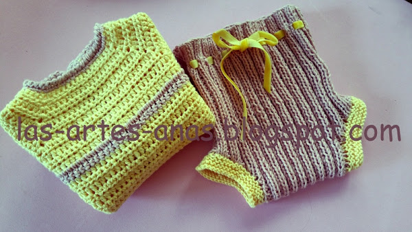 Este conjunto bebé es para los días mas calurosos de verano, por eso he elegido un fresco algodón y he mezclado dos técnicas CROCHET Y 2 AGUJAS