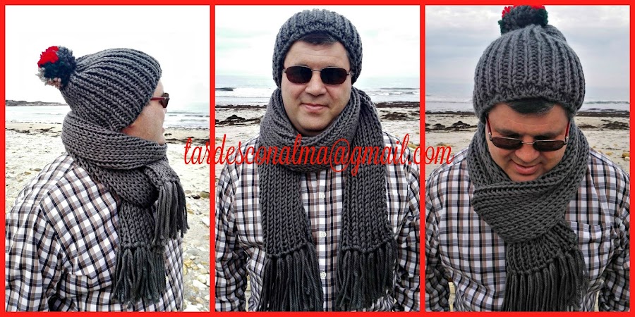punto elástico 1 derecho/1 revés, tanto para el gorro como para la bufanda.