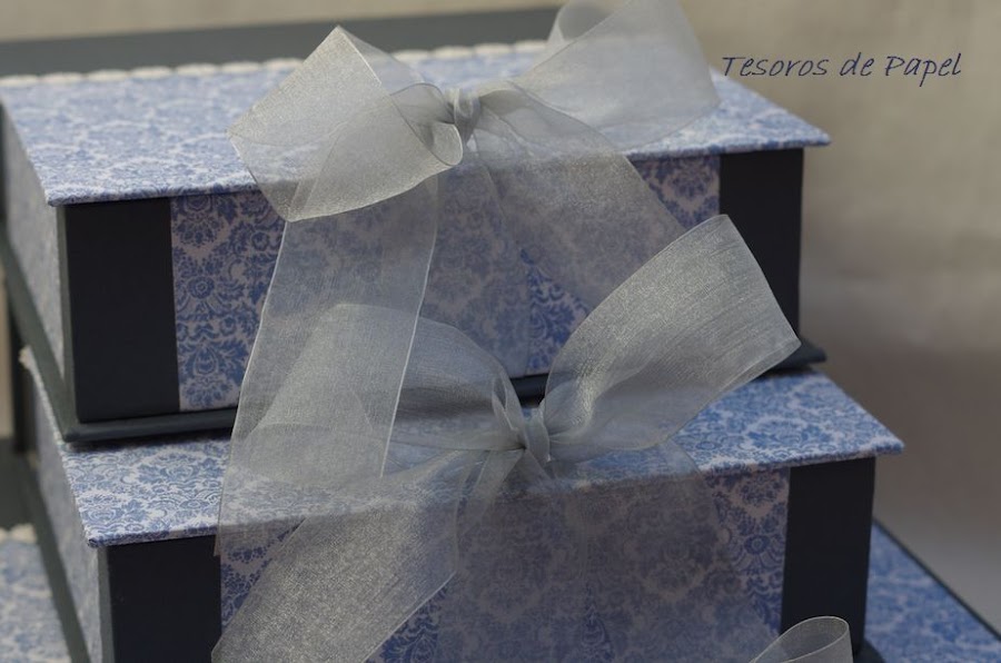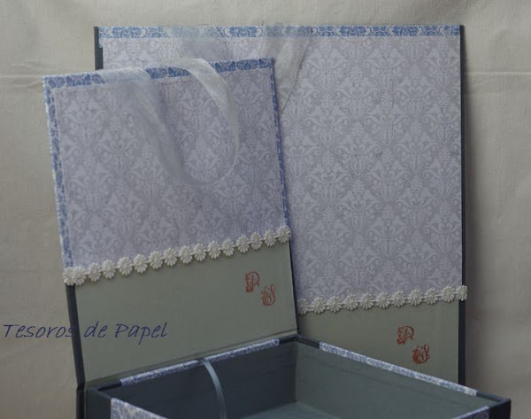 Una caja clásica, en formato libro, realizada en cartonaje para guardar dos pequeños jabones. La cajita es tan pequeña (14 x 9 cm), que cuando la estaba realizando tomaba varias veces las medidas, ya ...