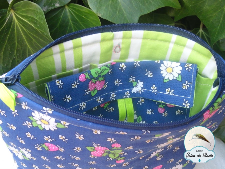 Al neceser además le he puesto una cintita por si quiere colgarlo todo en alguna percha del aseo mientras se cambia.