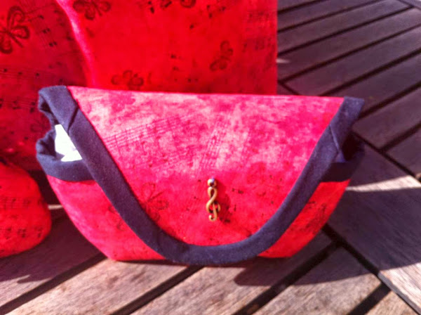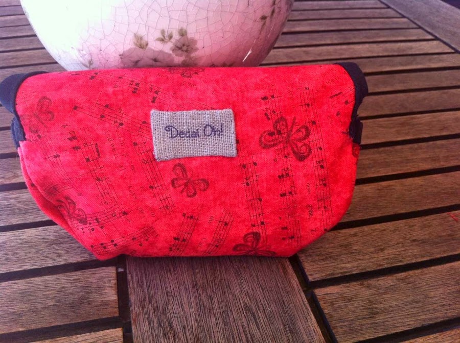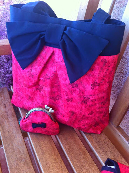 El bolso, una funda de gafas y un monederito de boquilla. Os pido disculpas por las fotos, el color de la tela saturaba y no sabía ya como enfocar ni qué iluminación era la más adecuada, así que hay fotos para todos los gustos...