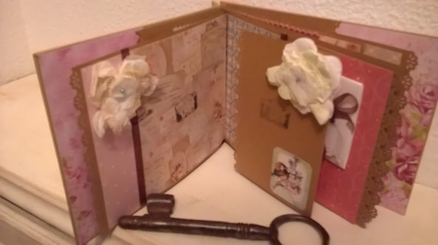 Y otro álbum más de comunión, éste se marcha al Sur. En esta ocasión, 20 páginas y , como en todos, mucho desplegable, cascadas, sobres con tarjetas para firmas de los invitados, bolsillos y hasta una pequeña libreta a modo de diario. Gracias, R. Mrs.Crafter silviahdezmiguel@yahoo.es Tfno 626428584