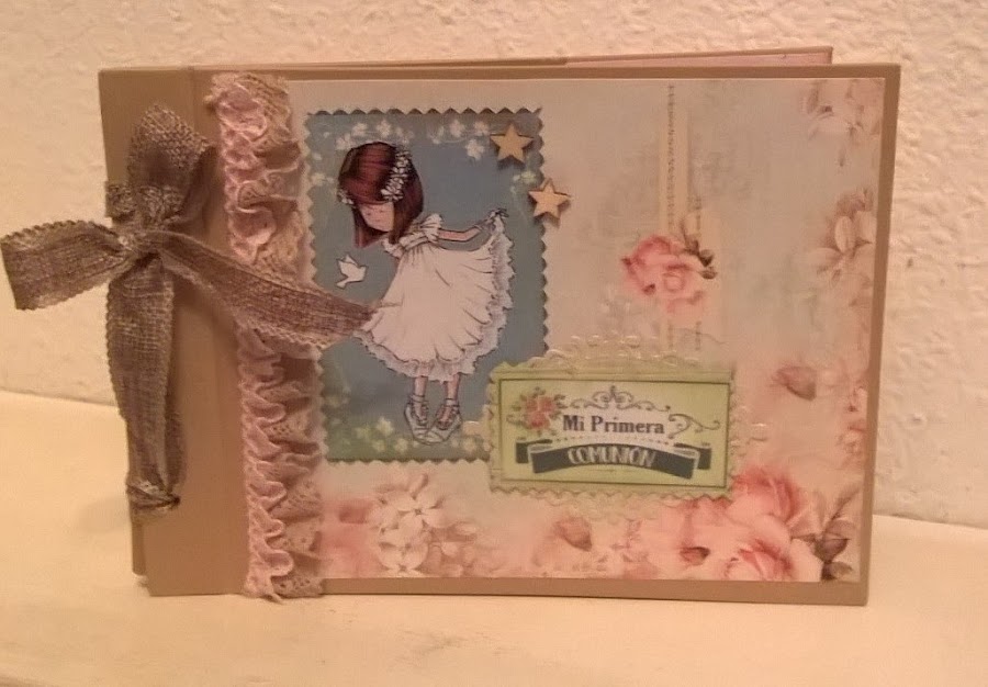 Un nuevo álbum de comunión , esta vez con caja a juego, que sale del taller. Precioso, con una caja entelada de estilo campestre y lazo de arpillera. Vamos a por el siguiente. Mrs Crafter silviahdezmiguel@yahoo.es Tfno 626428584