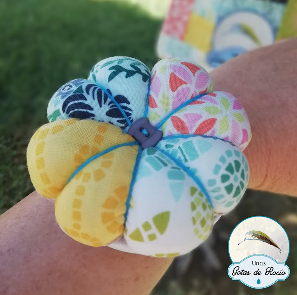 El alfiletero lleva una base rígida para no pincharme. Es una tapadera de un bote de cristal, pintada de blanco.