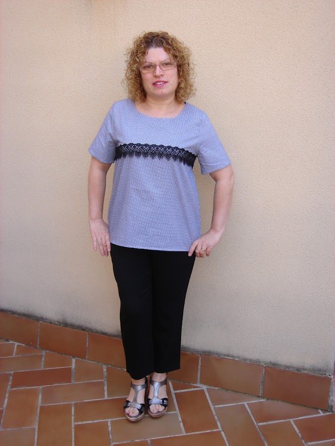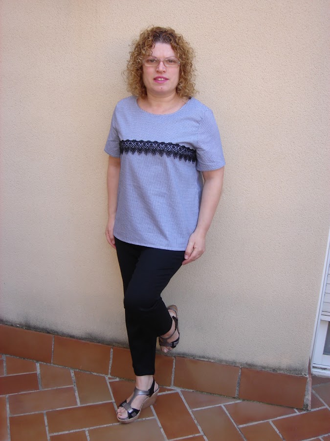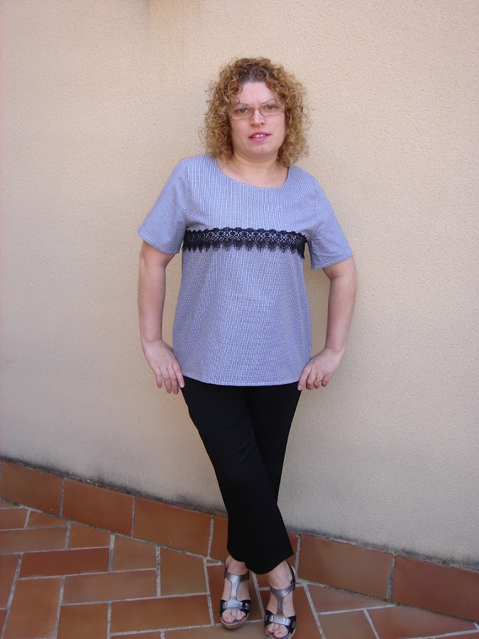 Este conjunto de pantalon negro y blusita de cuadritos vichy lo he cosido de cara al verano o cuando las temperaturas suban un poco.