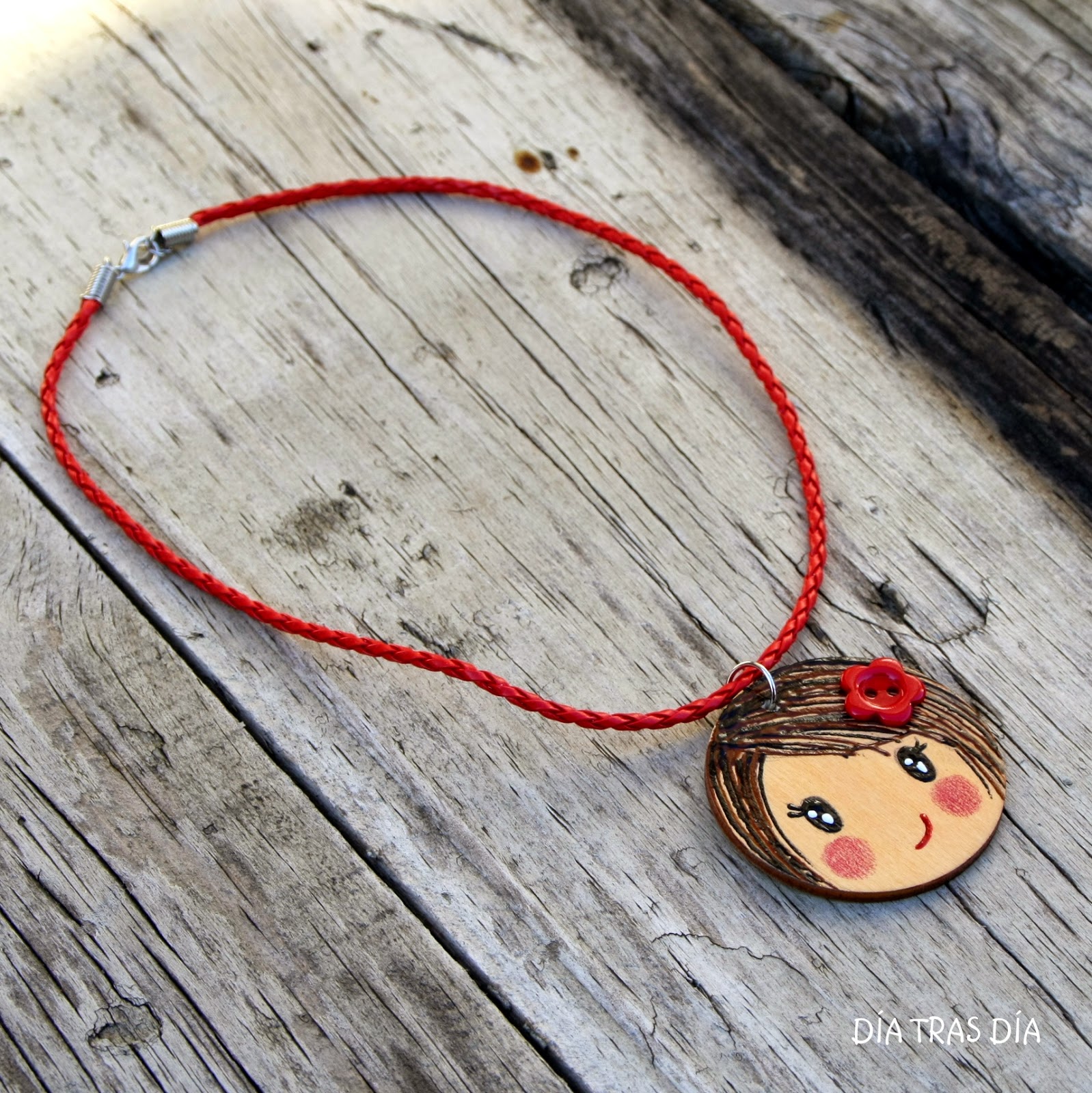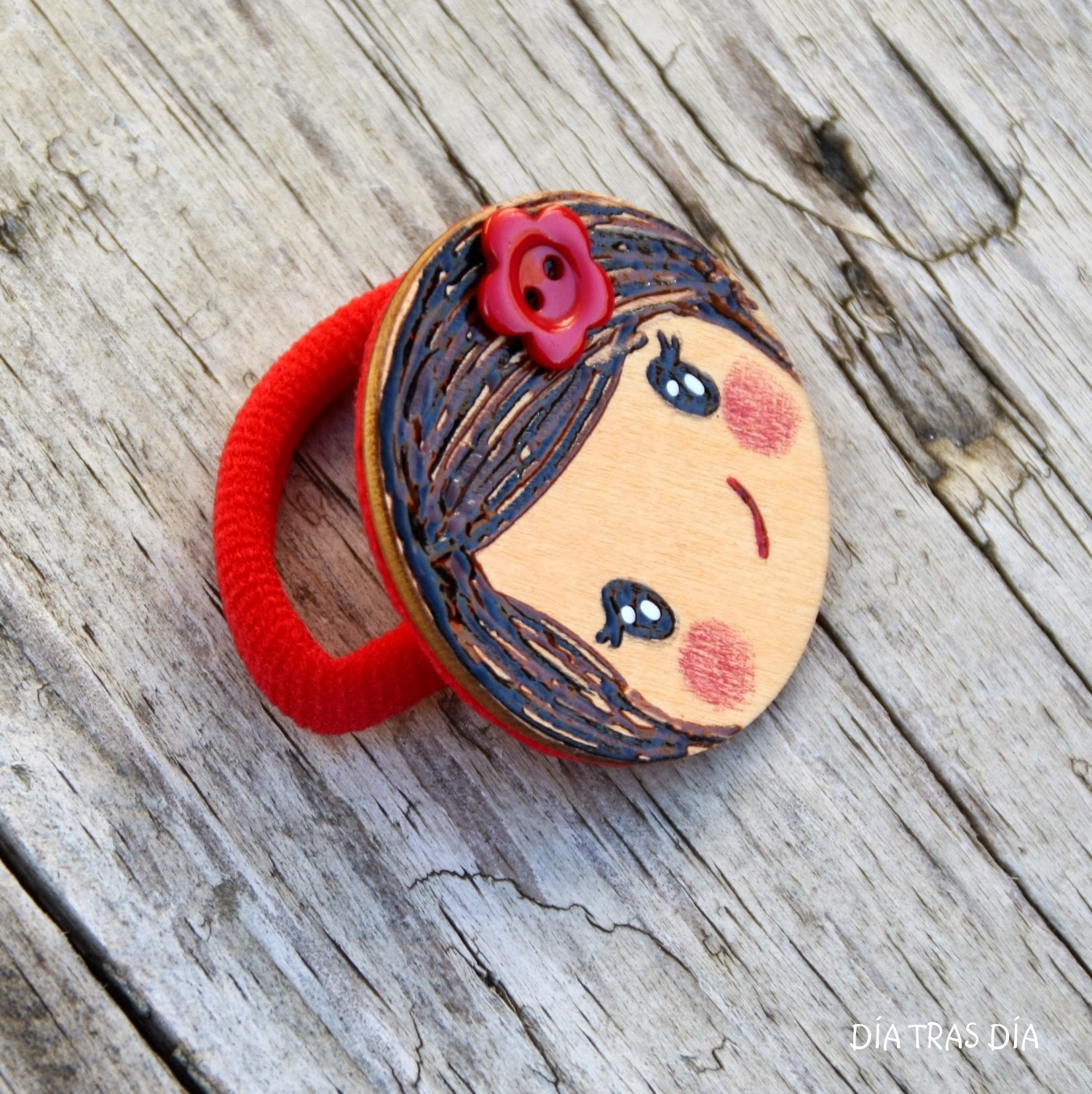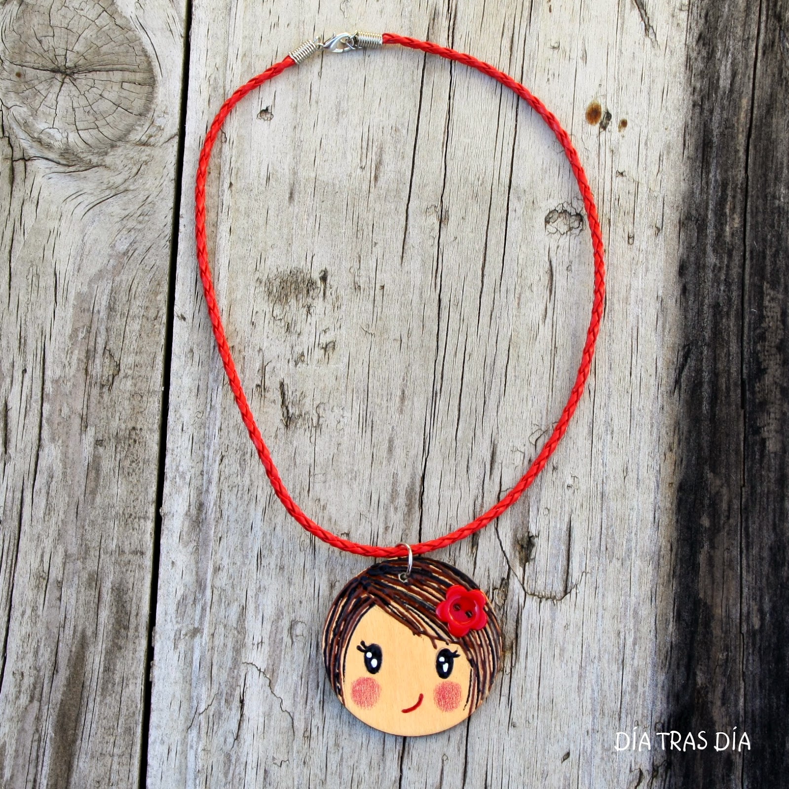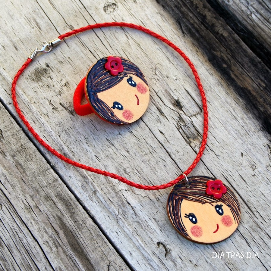 Y para acompañar a la camiseta, le hice un colgantey un coletero que llevaban una carita de una niña, que intenté que se pareciesen lo máximo posible a la de la camiseta.